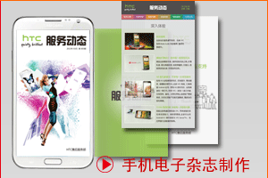 隨著高端智能手機的不斷普及以及移動WIFI等服務的推廣,越來越多的消費者把手機作為獲取新聞動態資訊、查詢并購買相關產品服務以及相互交流溝通的一個非常重要的載體,因此,越來越多的廠家商家在重視傳統推廣媒體的同時,也越來越重視手機等新興載體的營銷和展示。本公司與時俱進,可針對客戶需求,提供專門針對手機終端的電子雜志,在保留電子動感和互動特性的同時,最大限度地兼容了手機的一些特點。